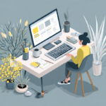 - What to show: A realistic small business environment such as a home office or shared workspace, with a person using a laptop displaying a visual workflow or form builder interface. The scene should feel practical and everyday.